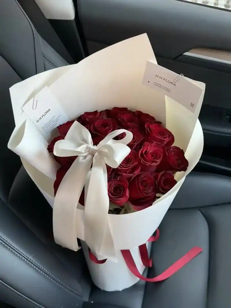 A Small bouquet of fresh roses, a romantic surprise